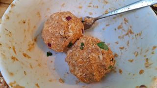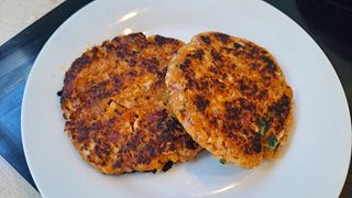 I haven't quite mastered it. Sometimes I do it with panko, other times just plain. You want some crunch in there. Can be achieved with some potato chips. Or do it with fish skin cracklings like they do with Steelhead fish burgers in Canada.