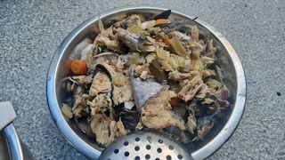 While you're filleting, just save any leftover skin and bones (blood removed) in a freezer bag or wrapped in cling wrap. Store it in the freezer until you've saved up enough to make a stock. For me that's usually around 2-3kg, but you can make it from a lot less (like 500g).