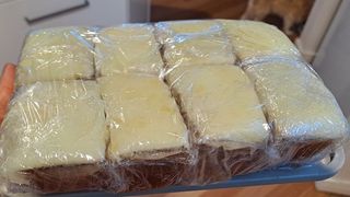 Refrigerate in container, then chop up and wrap individually for freezer.