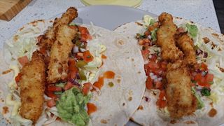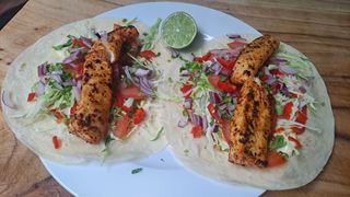 Dry rub fish tacos, might be with tuna even. Doesn't have to be breaded and deep fried every time.