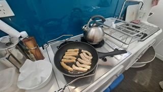 Shallow fry fish tacos on a catamaran (sailsurfroam.com) way out to sea on a trip to Tasmania. You never get sick of em! You do get sick on a sailboat however.