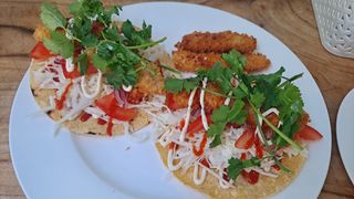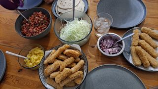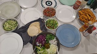 Standard fish taco setup (minus the tofu panko bits on the right)