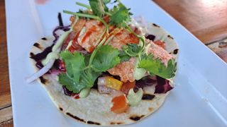 Steelhead fish taco from Canada, I think Gibsons on the Sunshine Coast in BC.