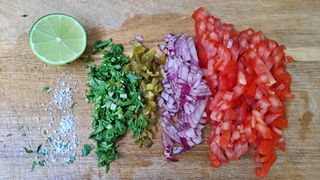 The ingredients I use. Feel free to add mango. Swap out the pickled jalapeno for any chili. Looks like a lot of salt, but probably right.