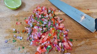 - 2 finely chopped tomatoes, seeds removed (either way works, but gets juicy)